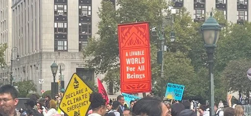 Several students gathered around, and we shared our most apparent experiences with climate change, particularly with the arrival of fall. Many felt the temperature was too warm for the autumn season in late September. Others mentioned the lack of snowfall, which was, in fact, a record low during New York’s previous winter season. Like these students, many other students would embark on a journey of creative storytelling and expression to portray their thoughts on climate change. Many students had their cameras for picture-taking and videography. Some students had expressive t-shirts, and others seemed unsure how to move forward. All in all, their presence showcased an effort to find their placement amongst the movement.